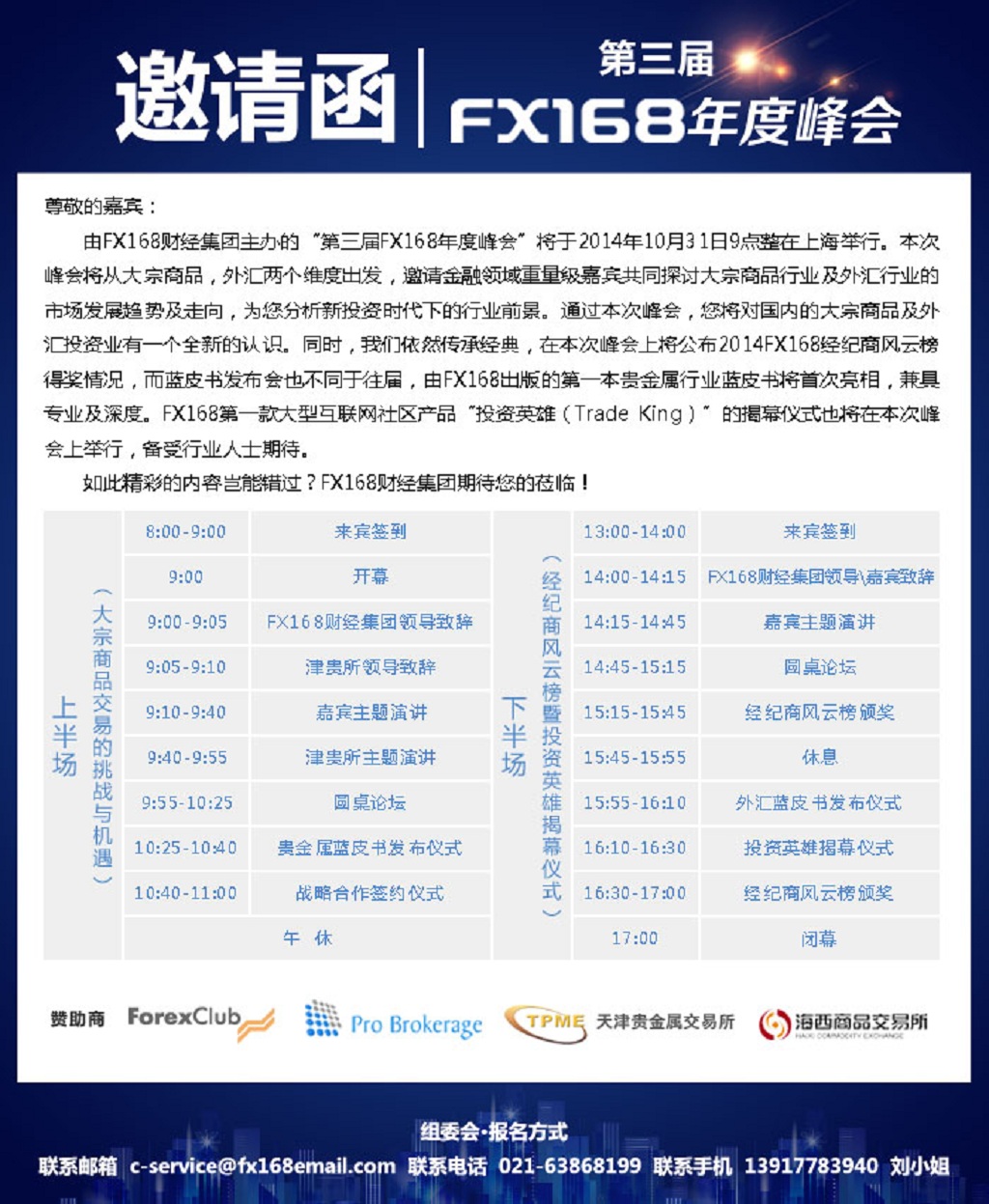 第三届FX168年度峰会将于2014年10月31日在上海举行